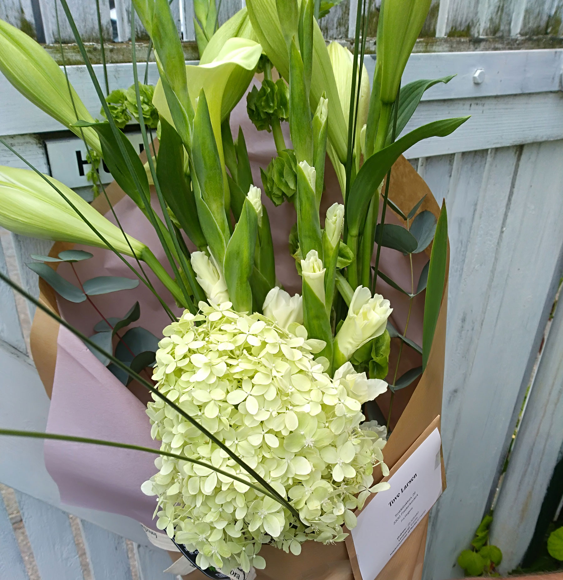 Når du bestiller en buket hos os, får du en buket af de friskeste blomster fra årstiden, som er bundet af erfarne og kreative hænder, og som holder længe.