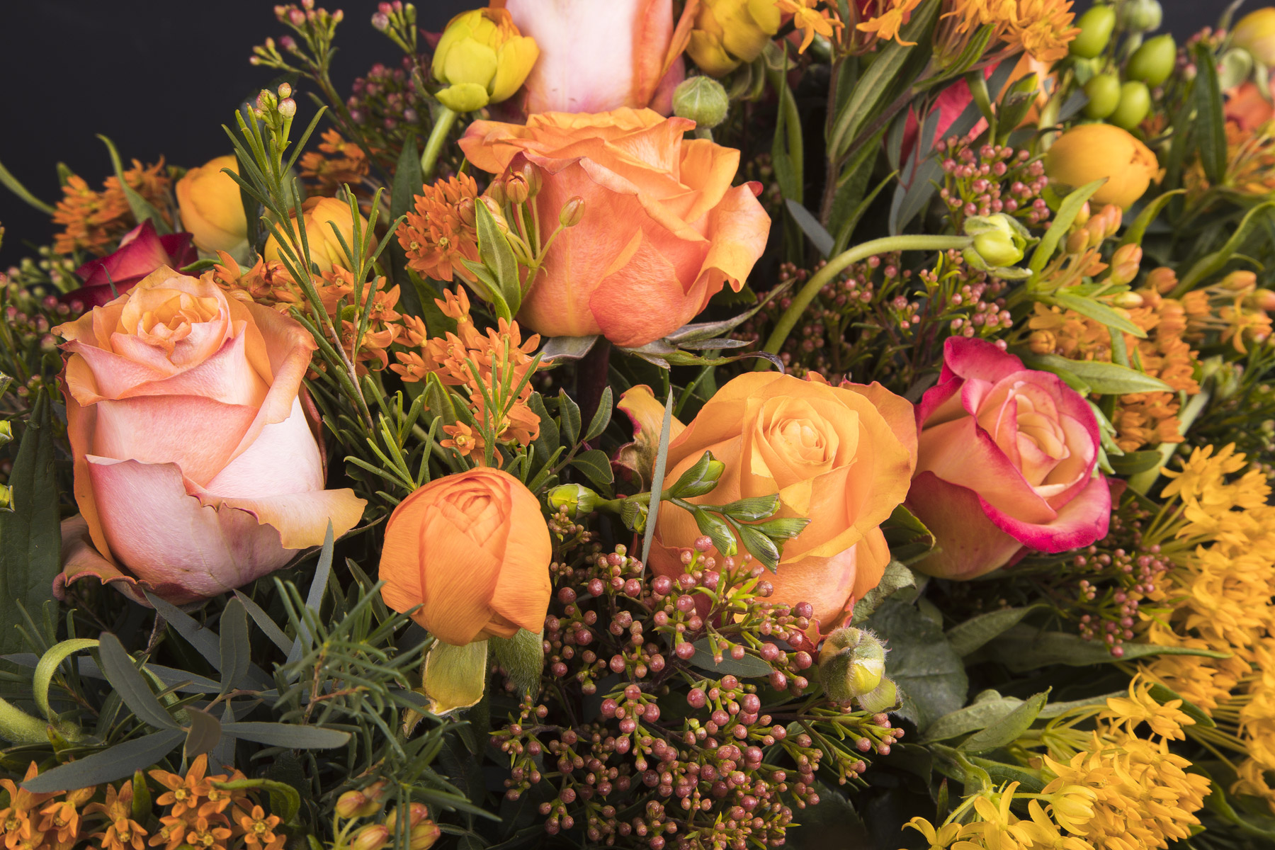Erantis binder sorgbinderi efter sæsonens smukke blomstersnit. Det betyder, at dekoratøren binder ud fra billedets stemning, form og størrelse. Der vil derfor helt naturligt forekomme andre alternativer til det viste blomstersnit, dette alene for at sikre et unikt binderi til den sidste afsked.
