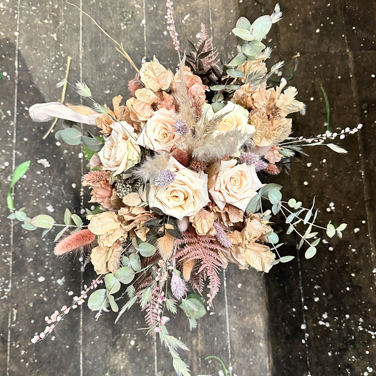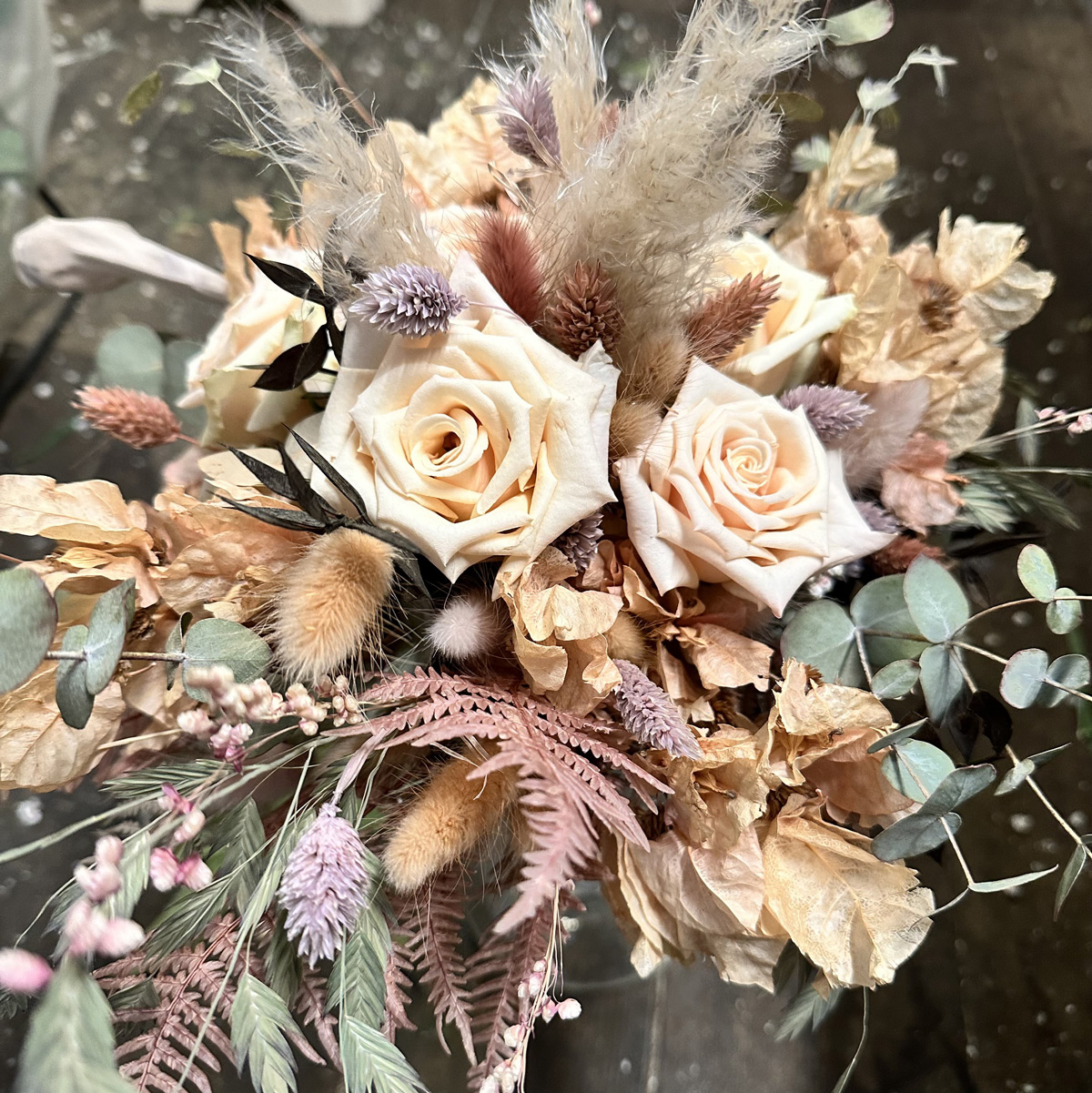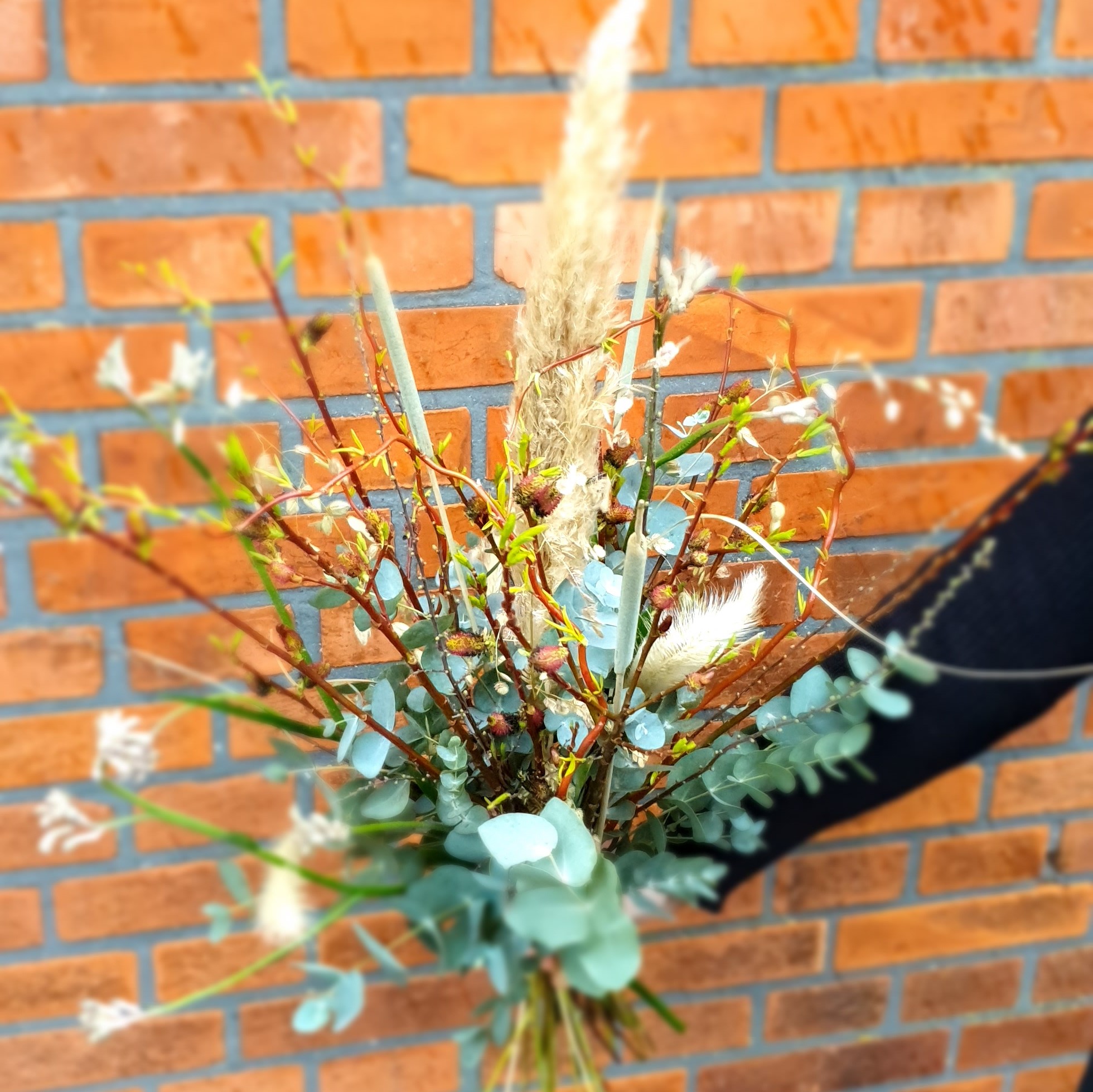 Luftig buket af tørrede blomster efter butikkens udvalg.